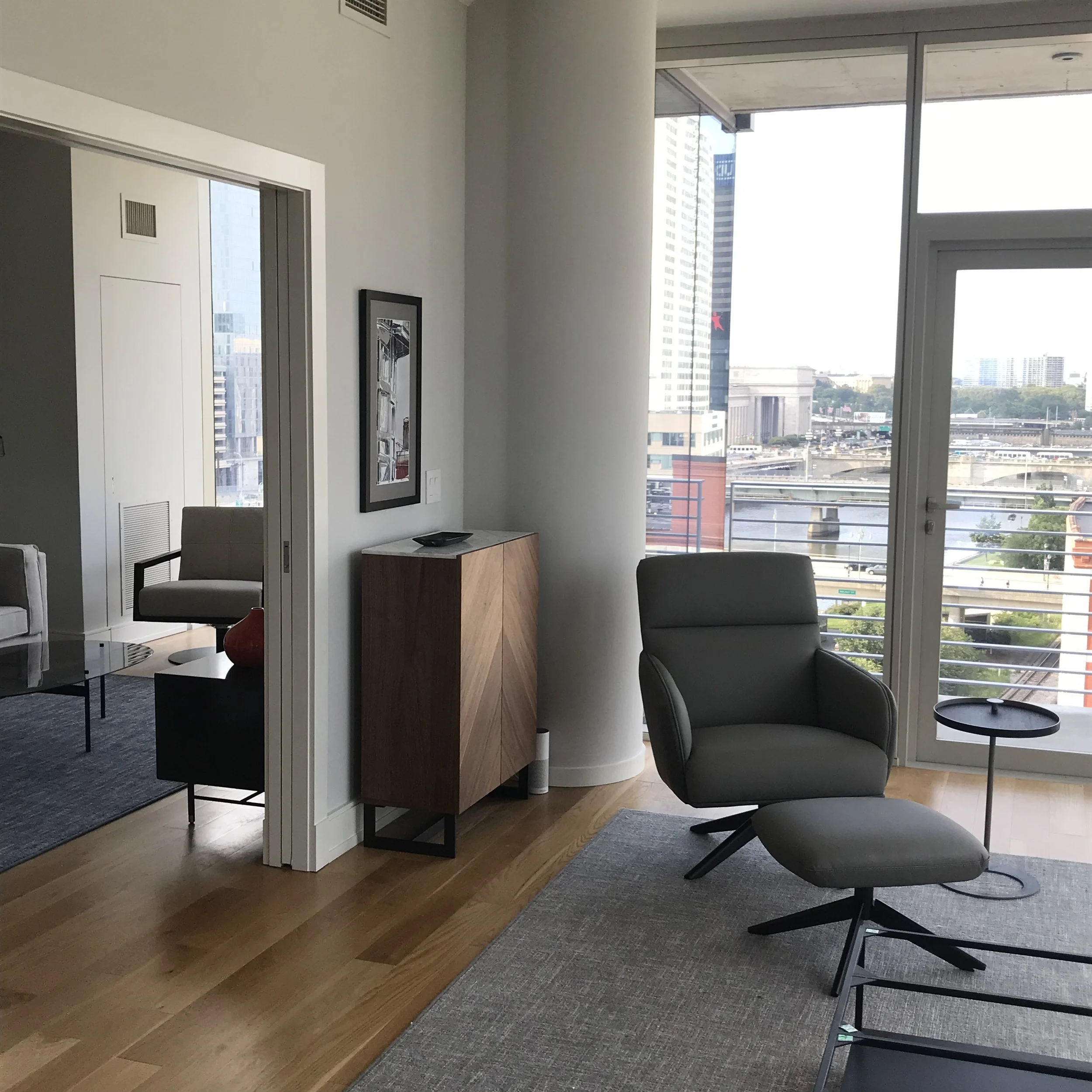 Working with a team of architects and engineers including the fabricator of the Zaha Hadid condo at 28th Street NYC, we developed the full interior design for this modernist home in suburban Philadelphia. The combination of natural and industrial materials plus modern classic furniture imbue this home with a warmth not typically associated with modernism.
